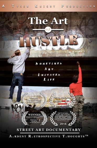 THE DOCUMENTARY THE ART OF HUSTLE HIGHLIGHTS STREET ARTIST TYSEN KNIGHT'S GROWTH IN THE CULTURE OF STREET ART WITH A PERFECT BALANCE BETWEEN RISK AND REWARD. STREET ART HAS BECOME A HUSTLE FOR WORLDWIDE RECOGNITION.