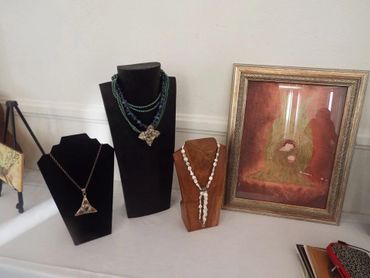 Moving back to California, she settled in Ojai, continued developing her artistry and jewelry business and displayed and sold across the country while raising four children. She is delighted to be able to participate in the cultural and spiritual events in this community, to which she’s been coming for 45 years and of which she is now a proud resident.